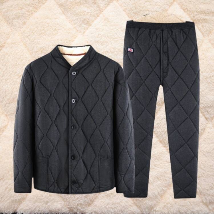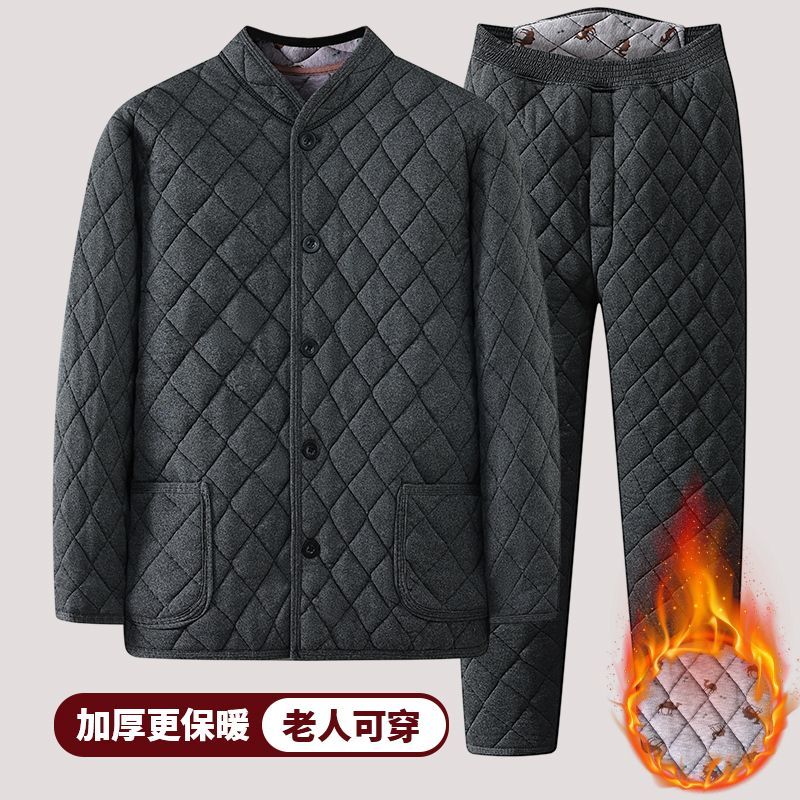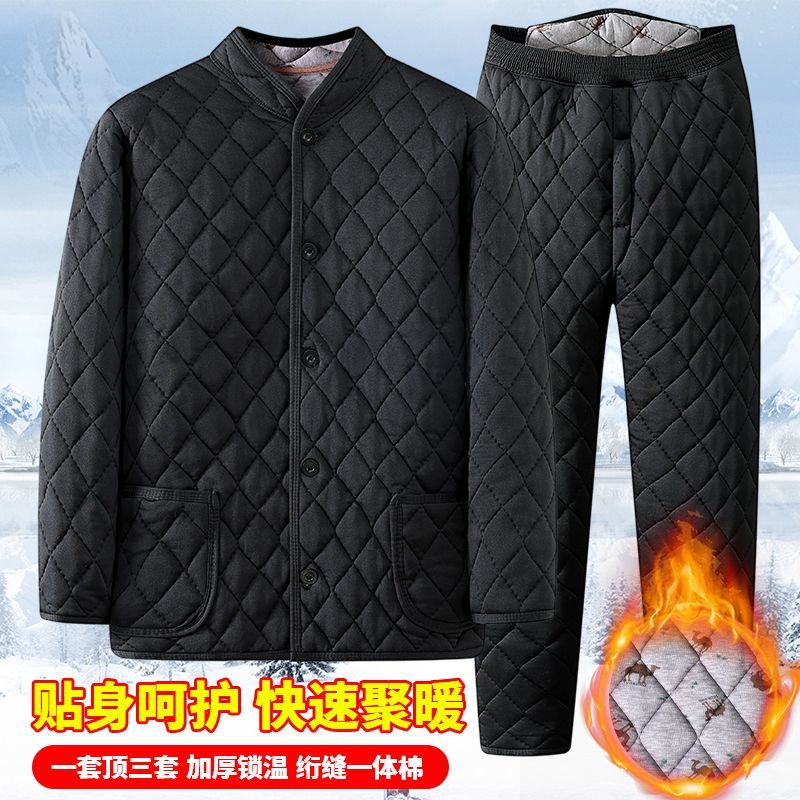 中老年人男士套装羊羔绒外套男棉衣冬季加厚棉服大码爸爸冬装棉袄