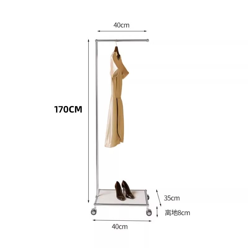 移动不锈钢挂衣架简约落地卧室带轮衣帽架衣服架子中古ins服装架