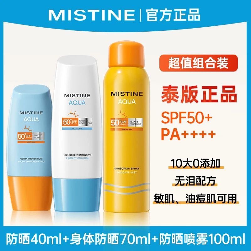 Mistine蜜丝婷防晒霜组合泰版美白隔离防水防汗防紫外线学生喷雾