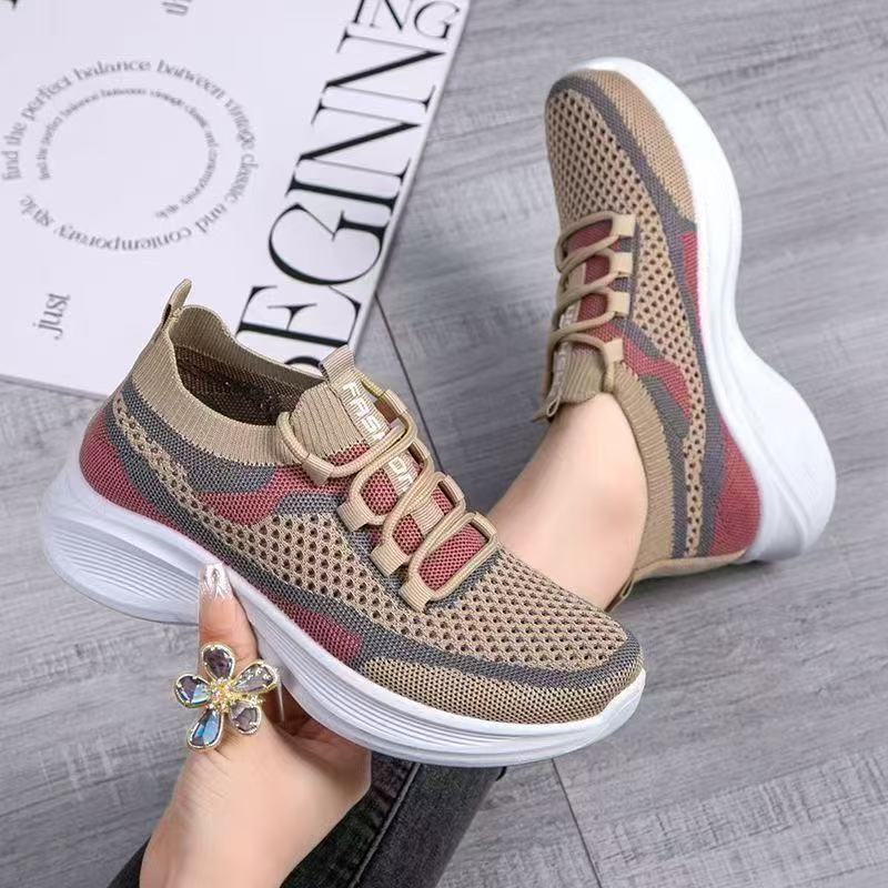 网面2025夏季运动休闲女鞋透气舒服轻盈软底跑步校园风学生鞋