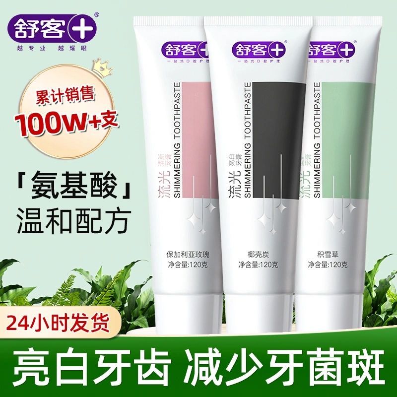 舒客氨基酸流光牙膏美白口臭祛黄去渍酵素亮白清新口气家庭装实惠