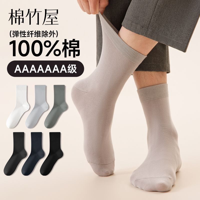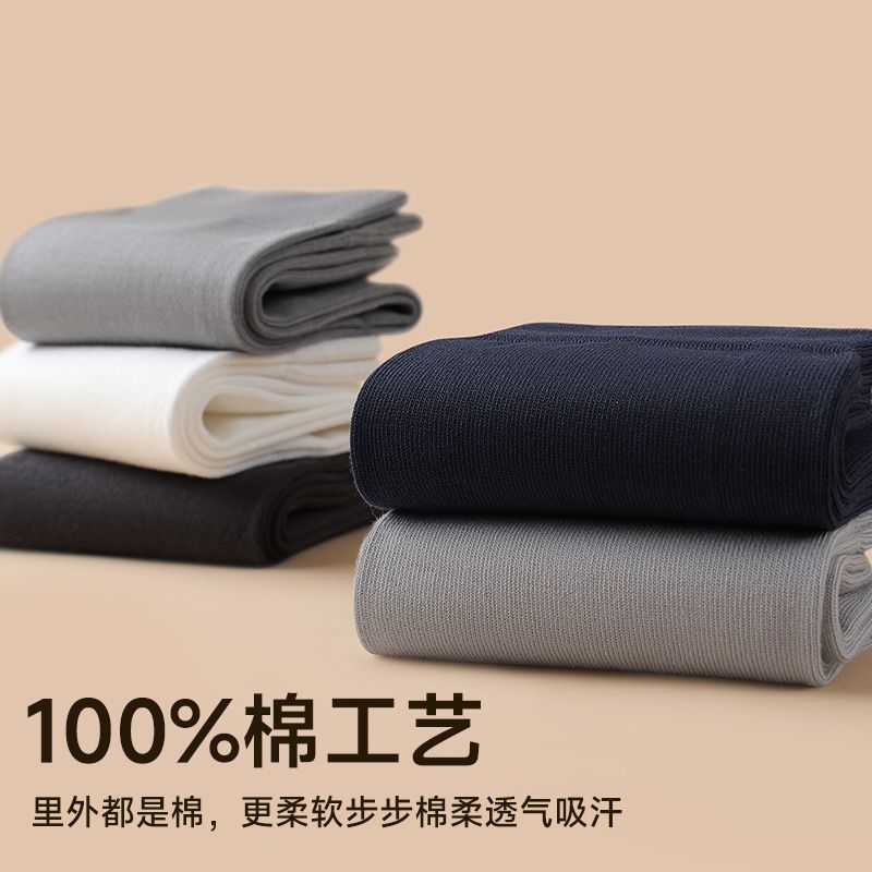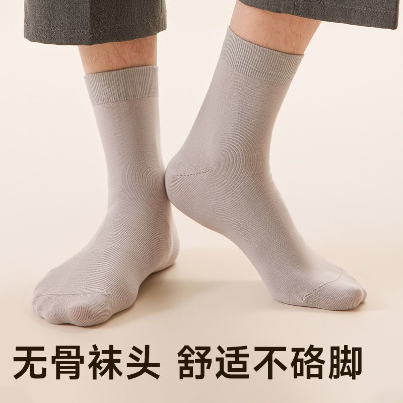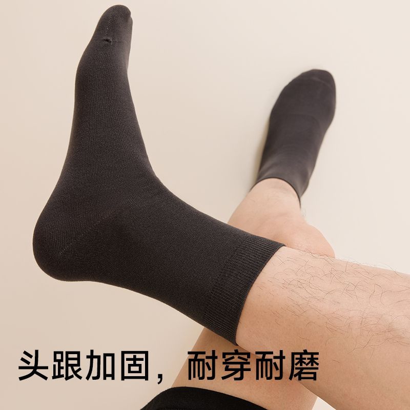 袜子男款秋冬款防臭透气长袜中筒100%纯棉吸汗抗菌黑色商务长筒袜