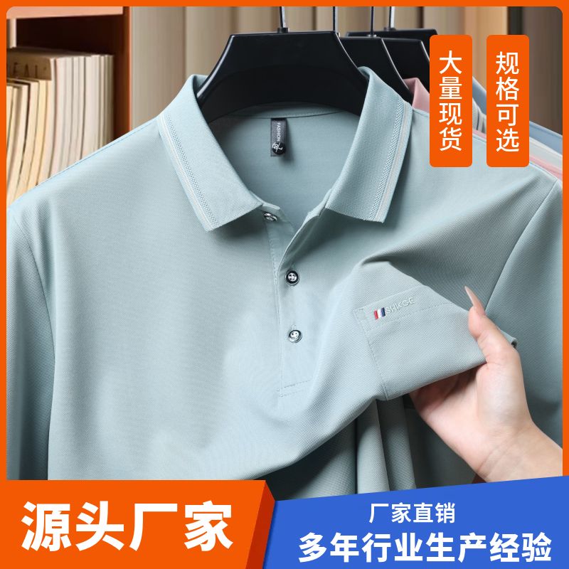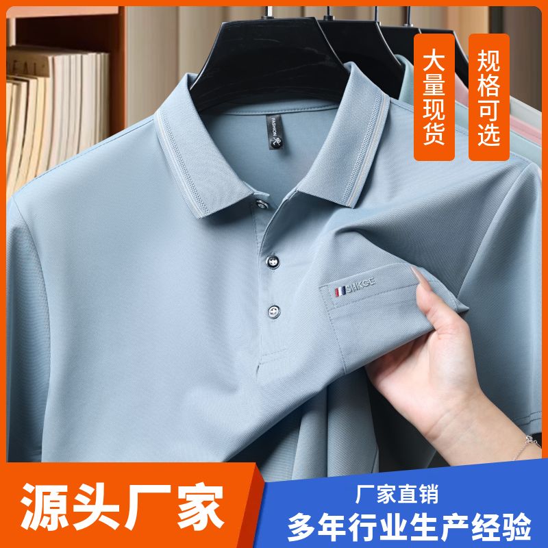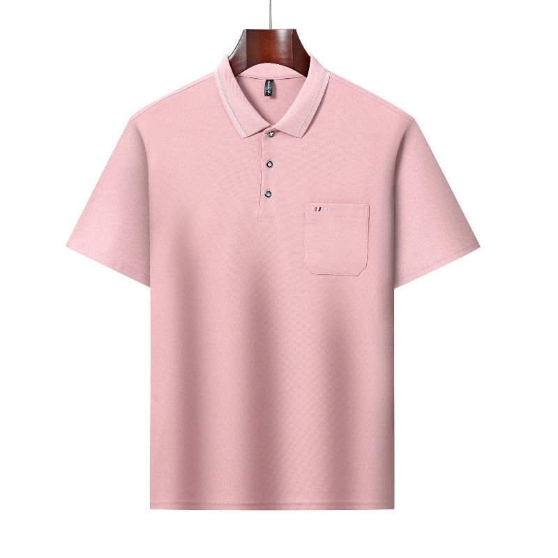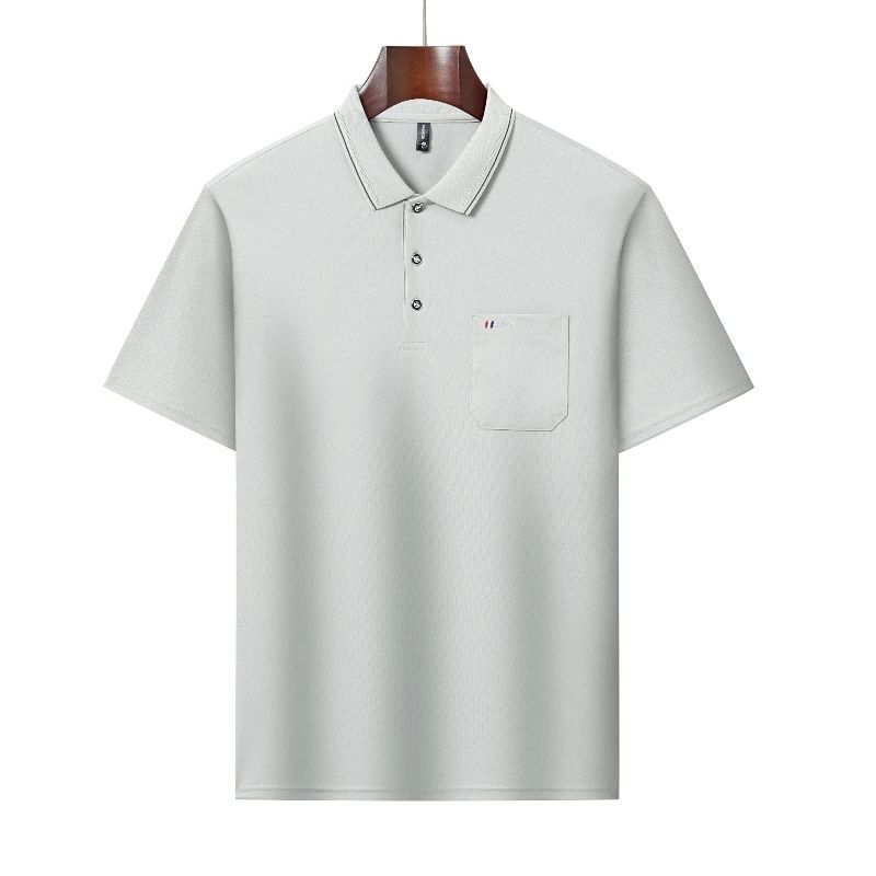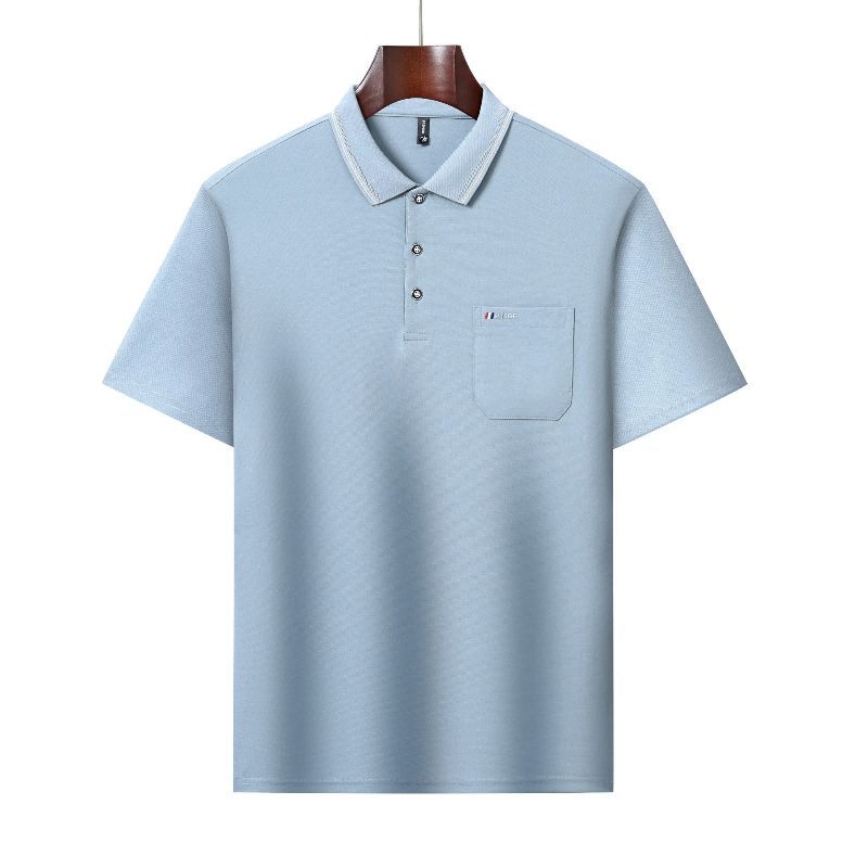新款纯色男士T恤短袖POLO衫哥弟纹休闲口袋商务中年夏季翻领上衣