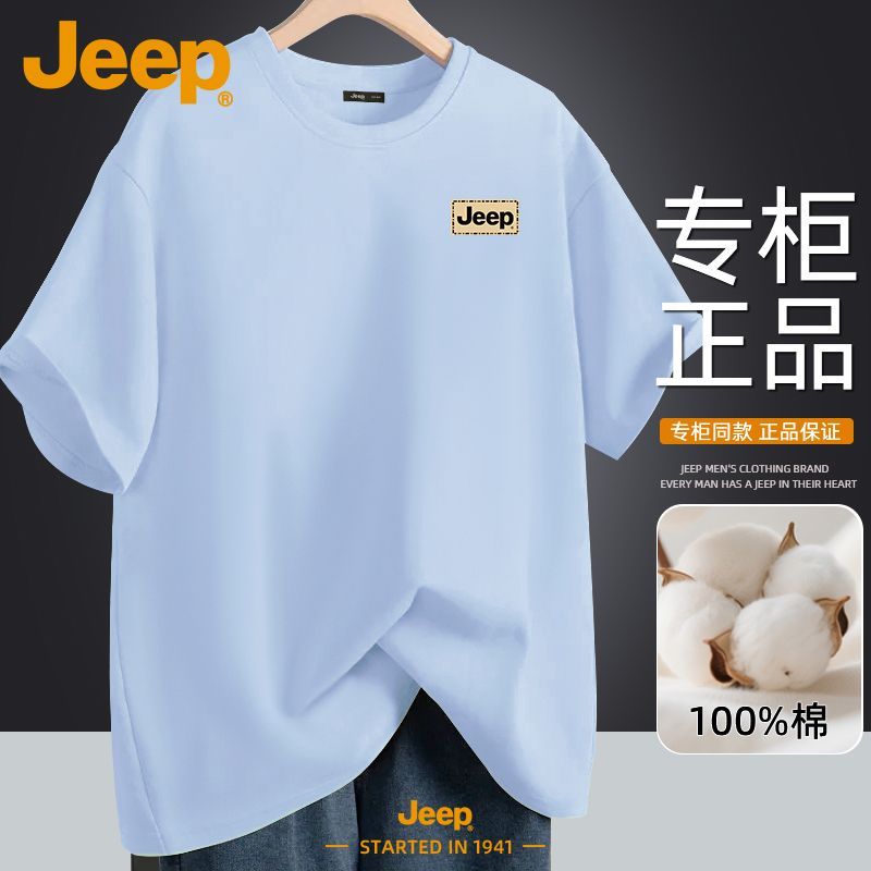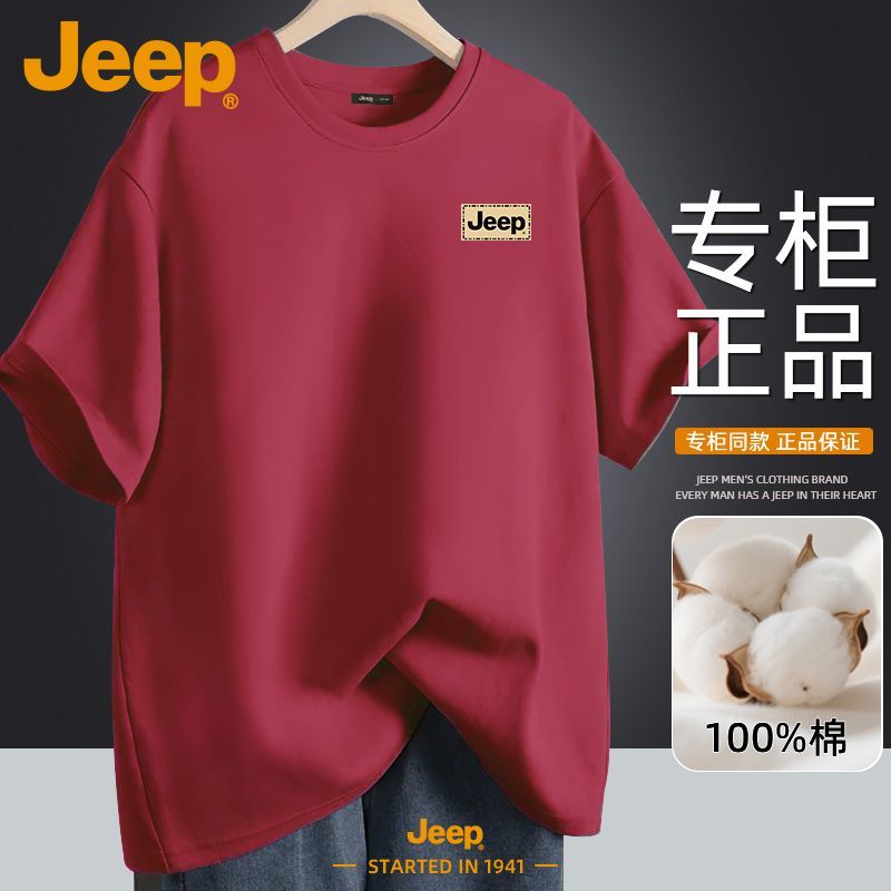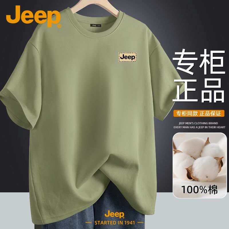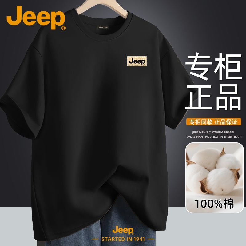 JEEP吉普男士纯棉短袖t恤薄款2026新款夏季宽松圆领潮流帅气上衣