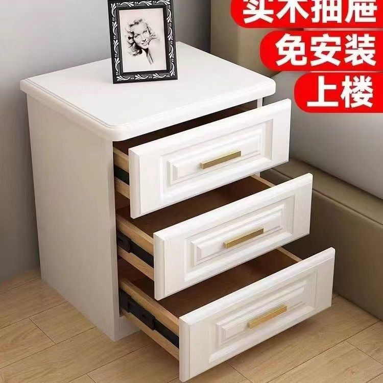 实木三抽轻奢简约现代北欧床边白色小柜子卧室收纳床头柜整装