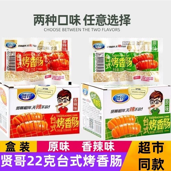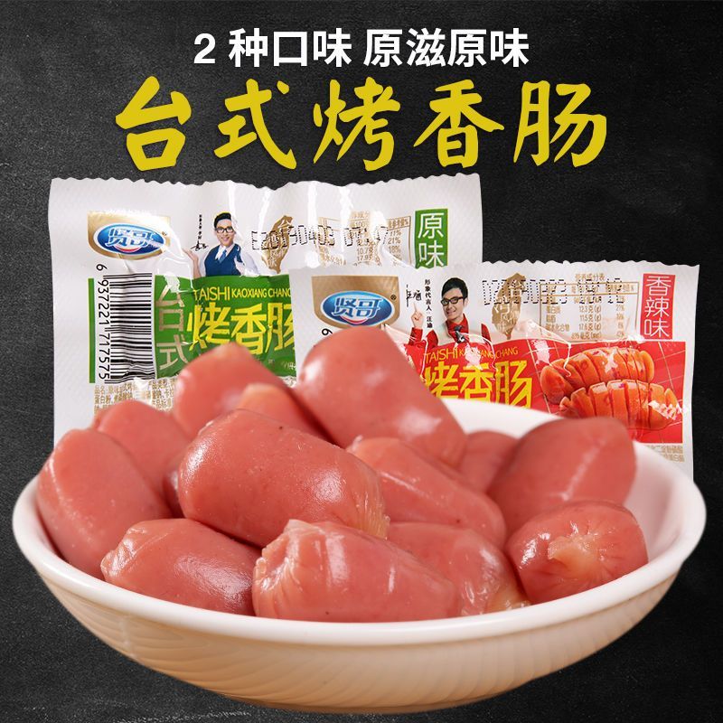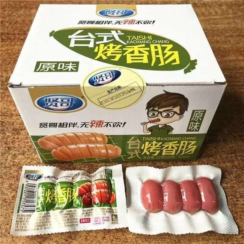新日期贤哥台式烤香肠原味香辣22g拇指小火腿肠迷你休闲茶水间