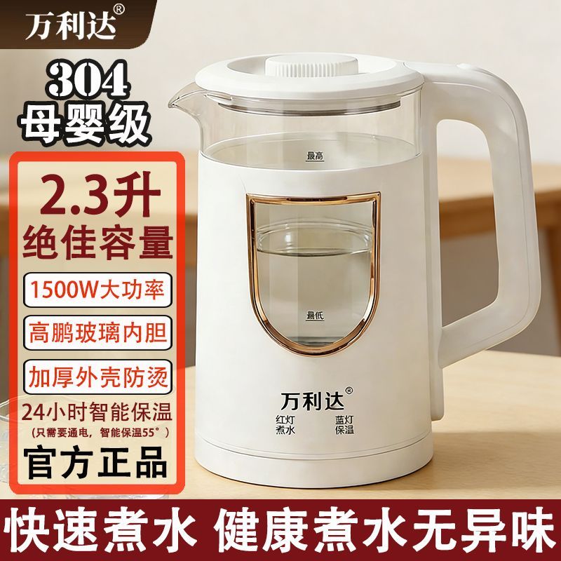 万利达玻璃烧水壶恒温304不锈钢电热水壶保温一体全自动大容量