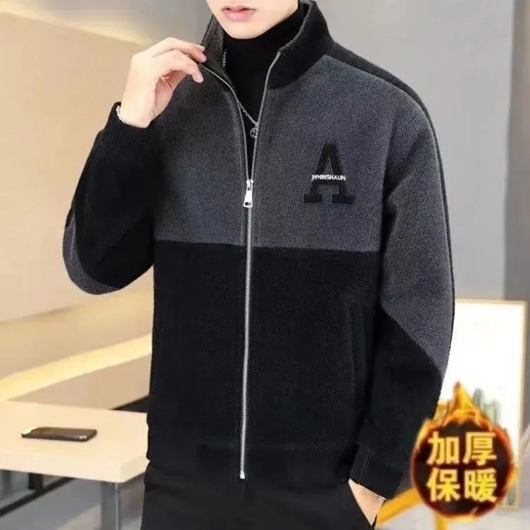 2024毛呢春秋外套没加绒男士呢大衣秋冬季短款休闲立领拼色夹克
