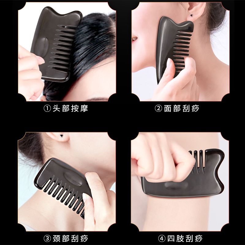 天然水牛角竹节梳刮痧梳子加厚全身通用头部经络梳按摩头疗刮痧板