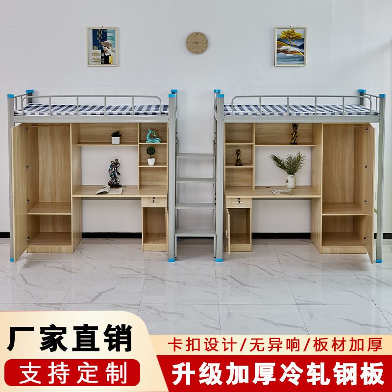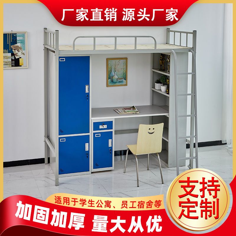 上床下桌员工双人铁架床大学生宿舍单人上床下柜写字台高低公寓床