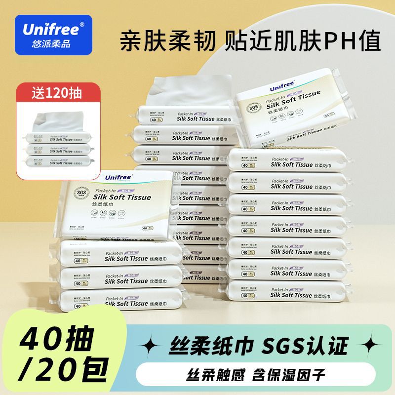 unifree柔纸巾婴儿专用新生宝宝擦鼻涕专用乳霜纸40抽23包云柔巾