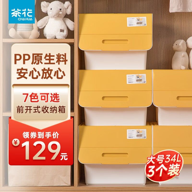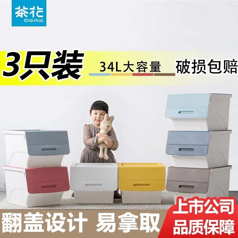 茶花收纳箱翻盖家用儿童玩具斜口收纳箱衣物塑料储物整理箱大容量
