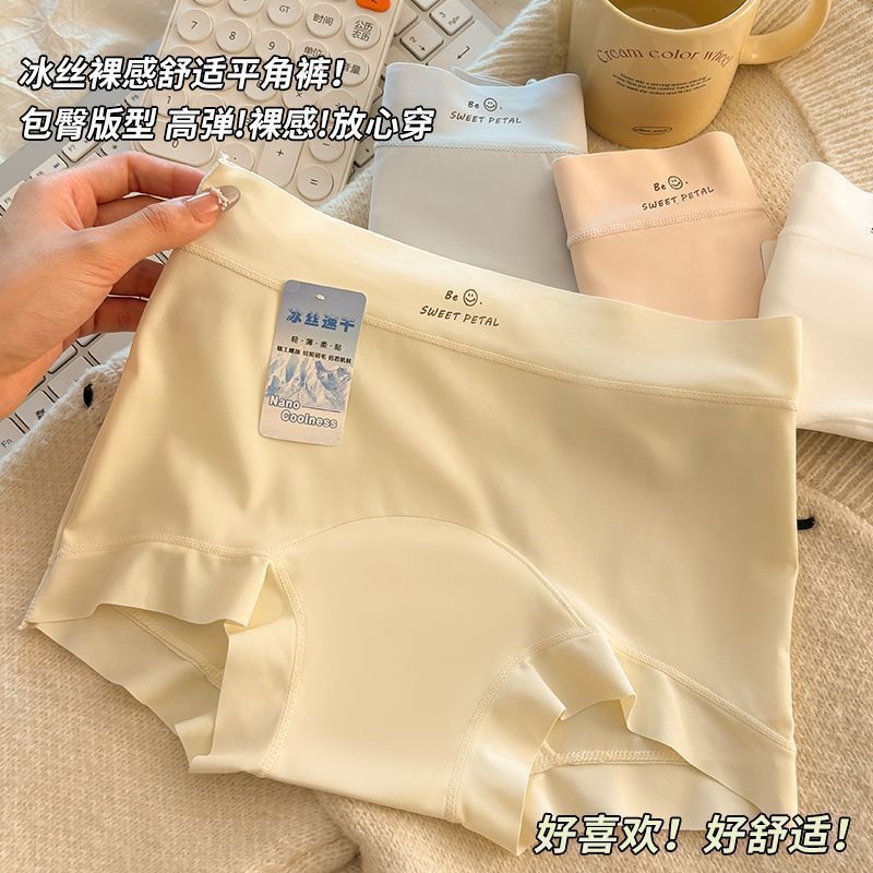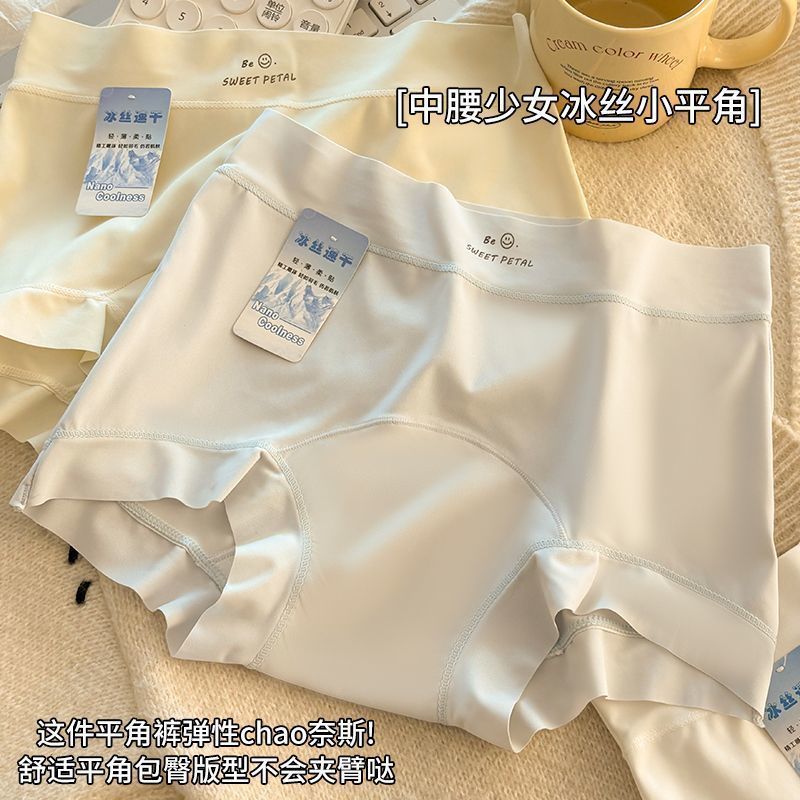 10A 级抑菌无痕平角内裤女冰丝加长底裆少女学生平角裤头中腰透气