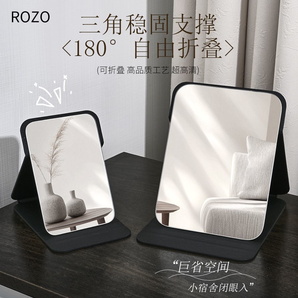 Rozo镜子可折叠化妆镜2026年新款大号学生宿舍梳妆镜台式桌面便携