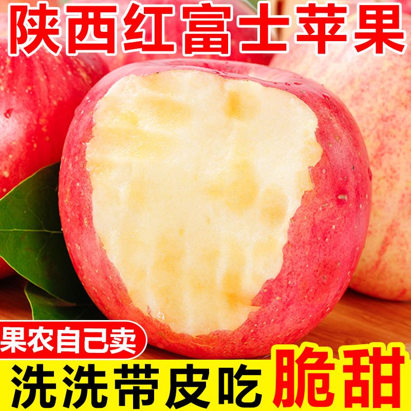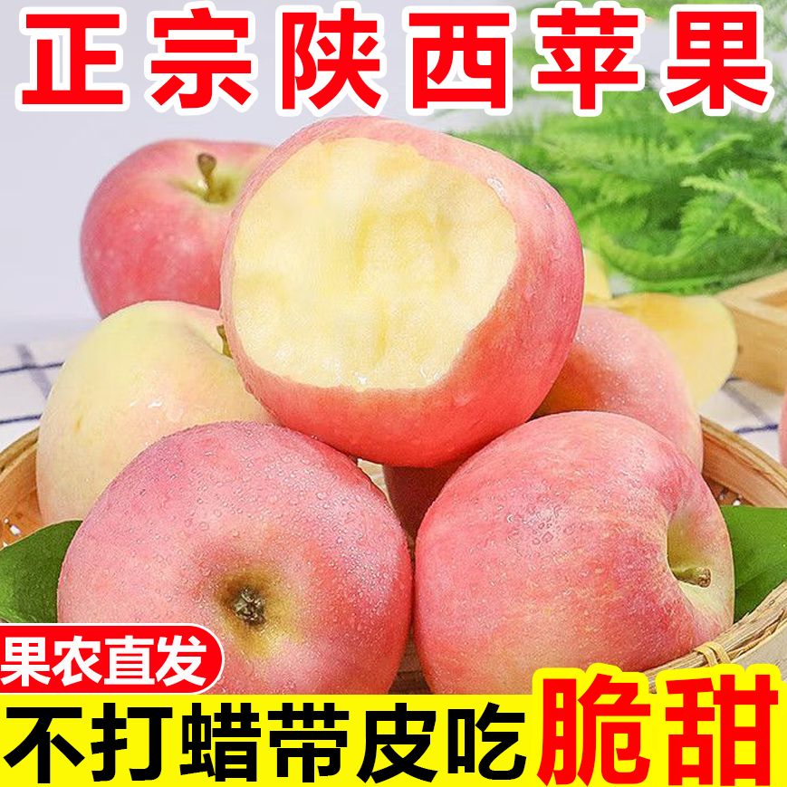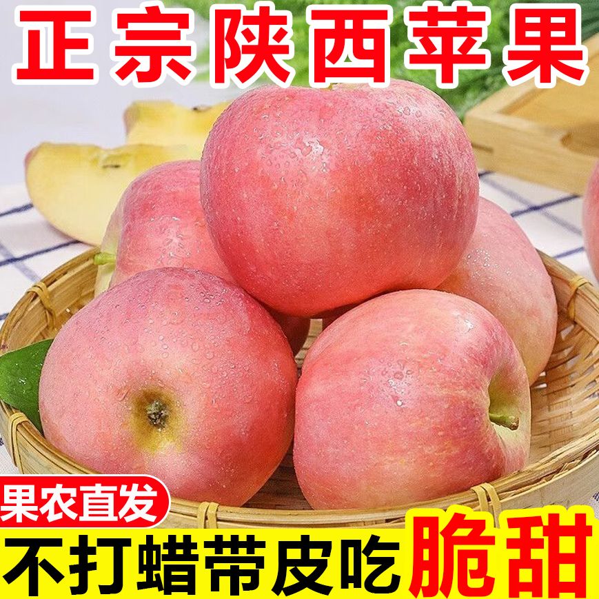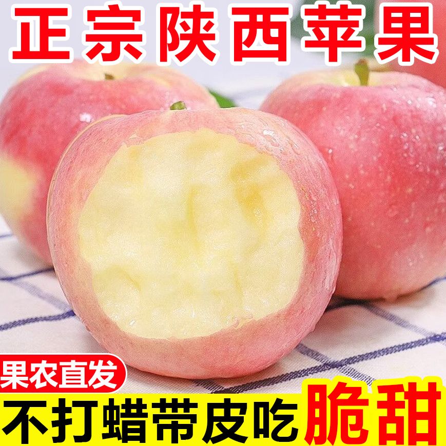 正宗陕西苹果高原红富士苹果不打蜡带皮吃一整箱新鲜苹果水果批发