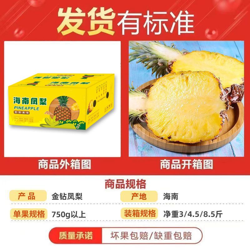 【彩箱】正宗海南金钻凤梨新鲜金钻凤梨手撕凤梨净重3斤单果1.5斤