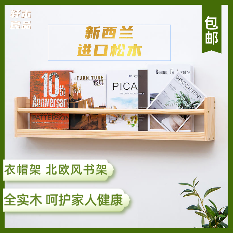 北欧实木书架置物架墙上简易壁挂荣誉墙墙面储物式书报收纳绘本架