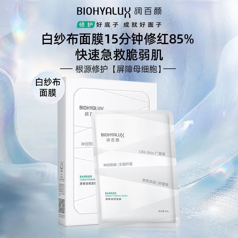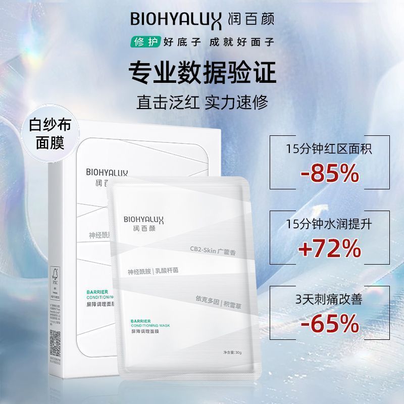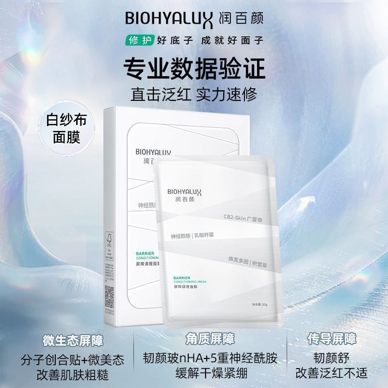 润百颜白纱布面膜2.0屏障调理敏感肌修护补水舒缓水润修复正品