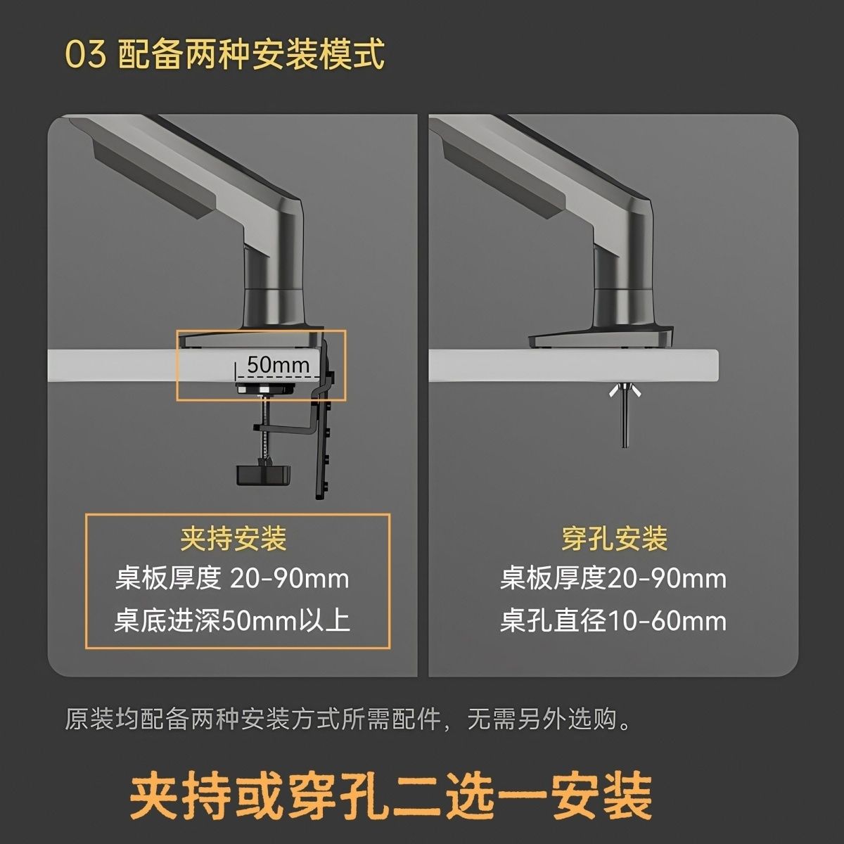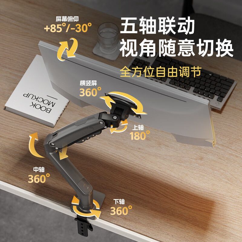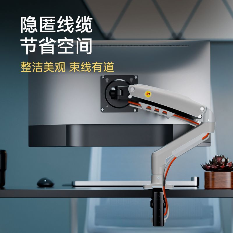 NBF80显示器电脑气动支架机械臂免打孔桌面升降气压悬停旋转悬臂