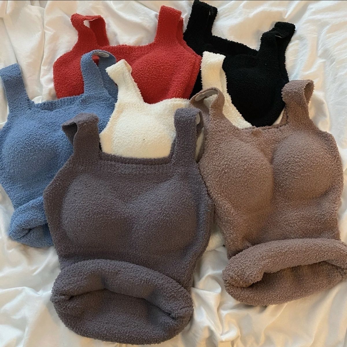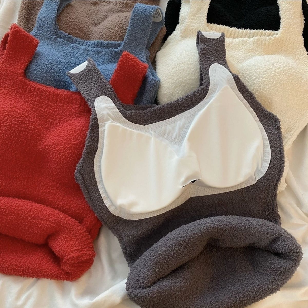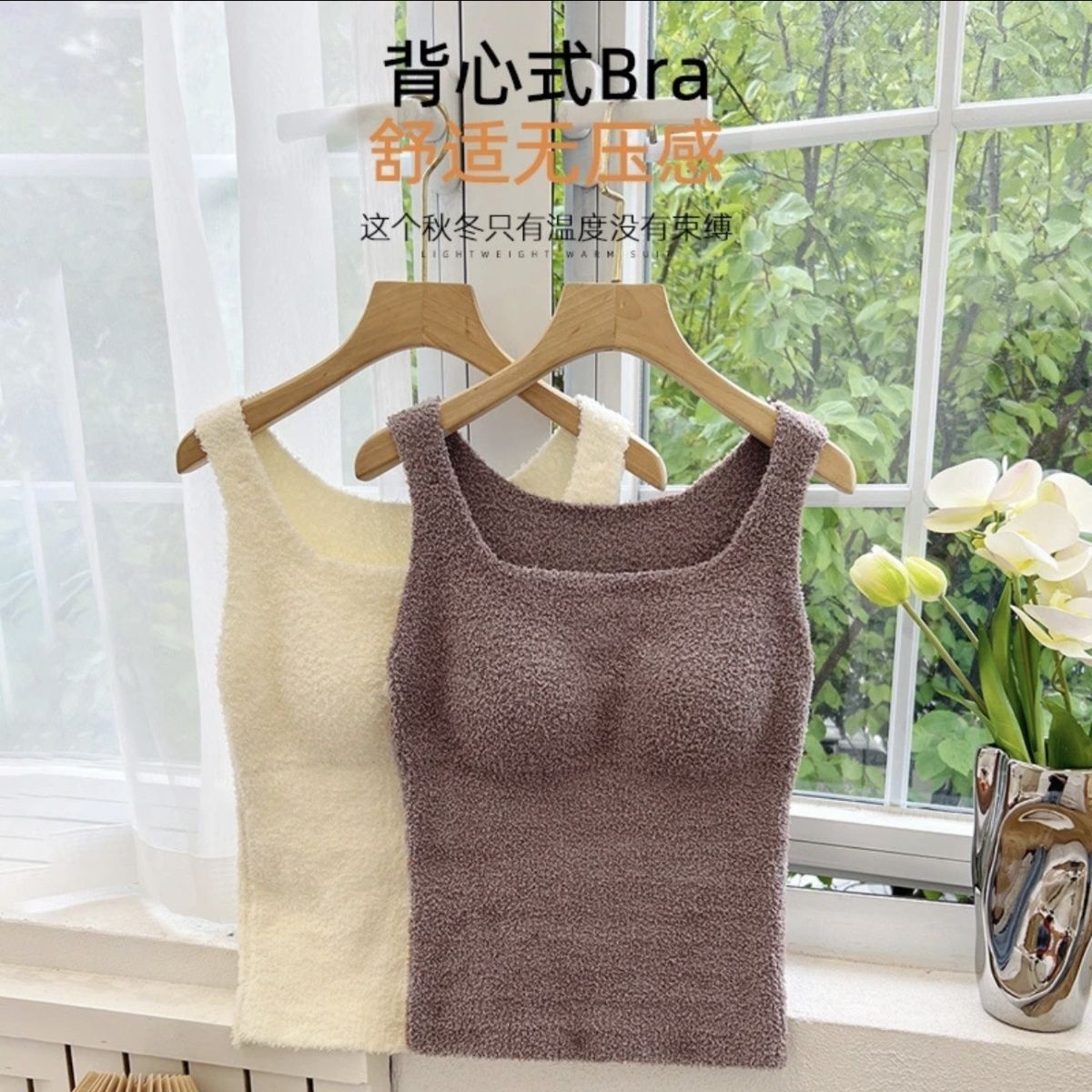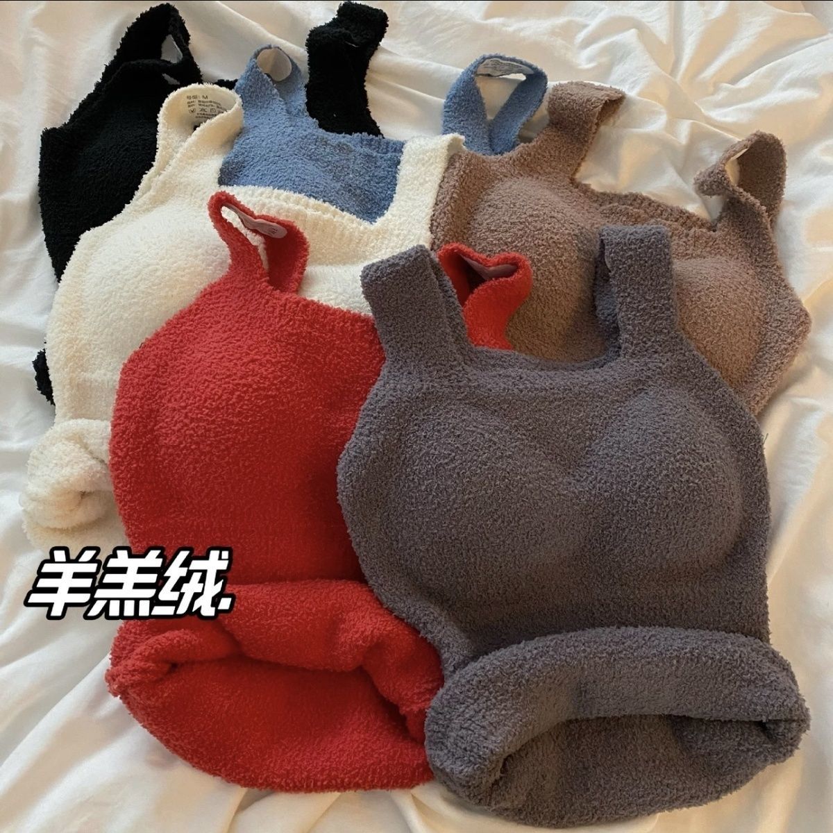 秋冬背心保暖加厚羊羔毛绒吊带无痕免穿文胸一体式内外穿加绒内衣