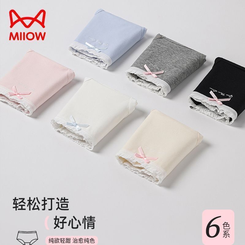 【猫人】纯棉少女内裤2025新款全棉抗菌档少女风中腰三角短裤头
