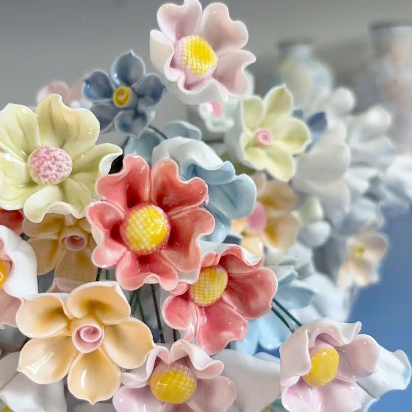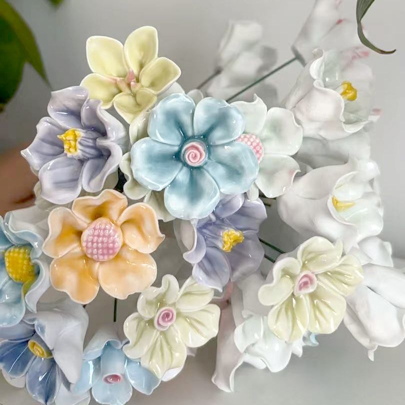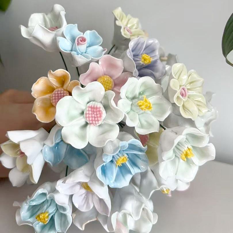 手工永生花摆件花束景德镇陶瓷手工花朵节日国庆节礼物陶瓷花创意