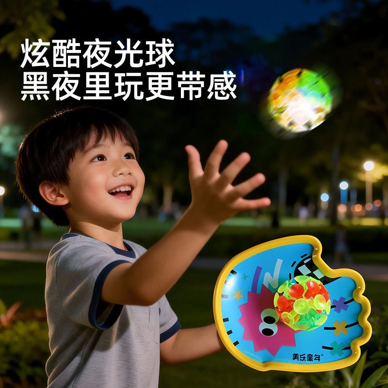 美乐童年接抛球吸盘球手抛接个球球夜光趣味亲子互动儿童户外玩具