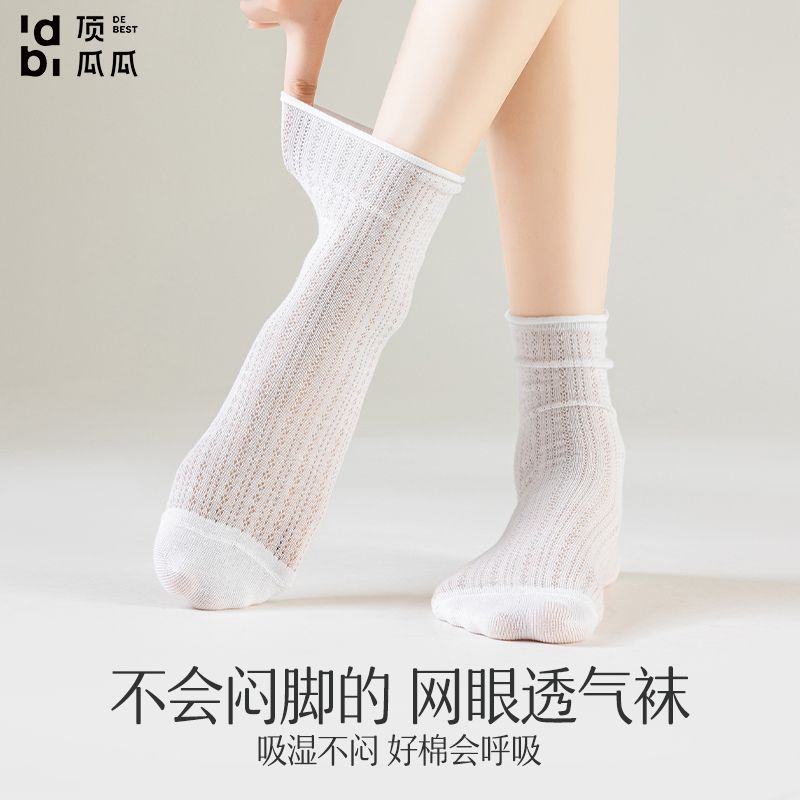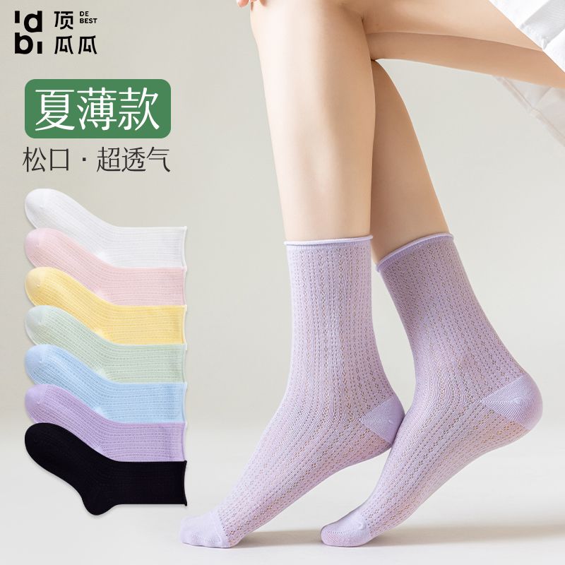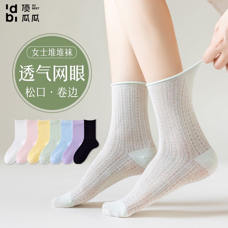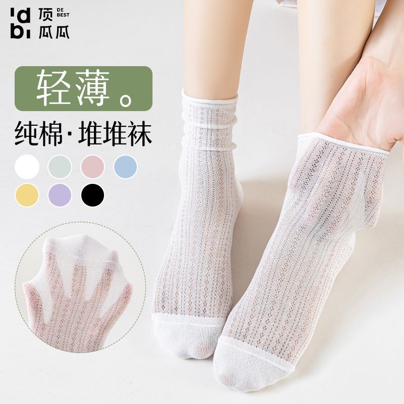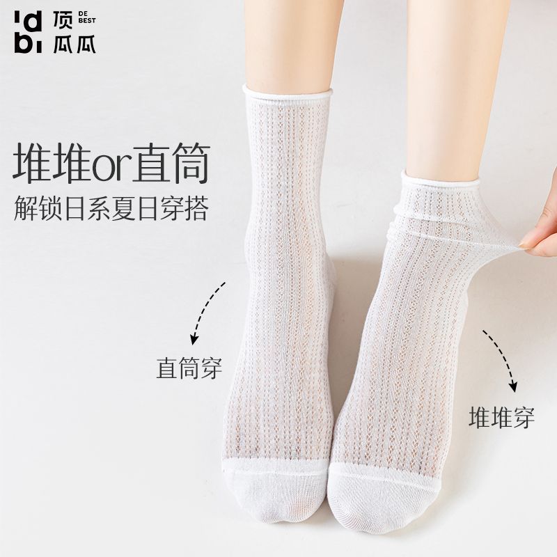 顶瓜瓜袜子女士中筒袜春夏季薄款透气堆堆袜休闲时尚简约百搭女袜