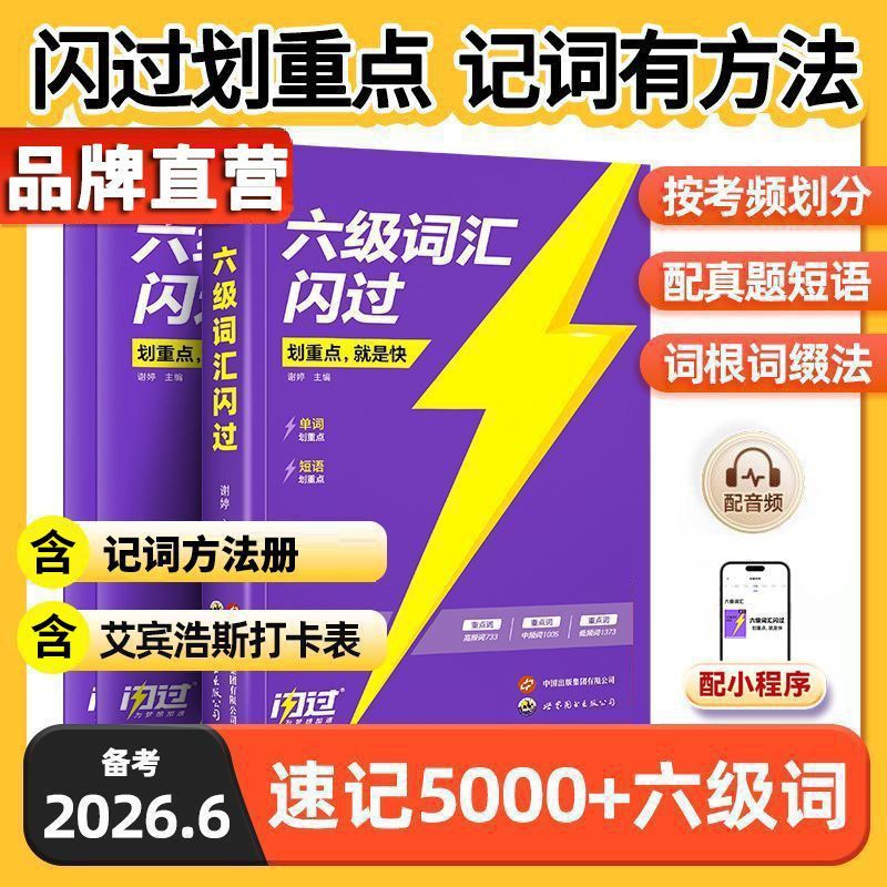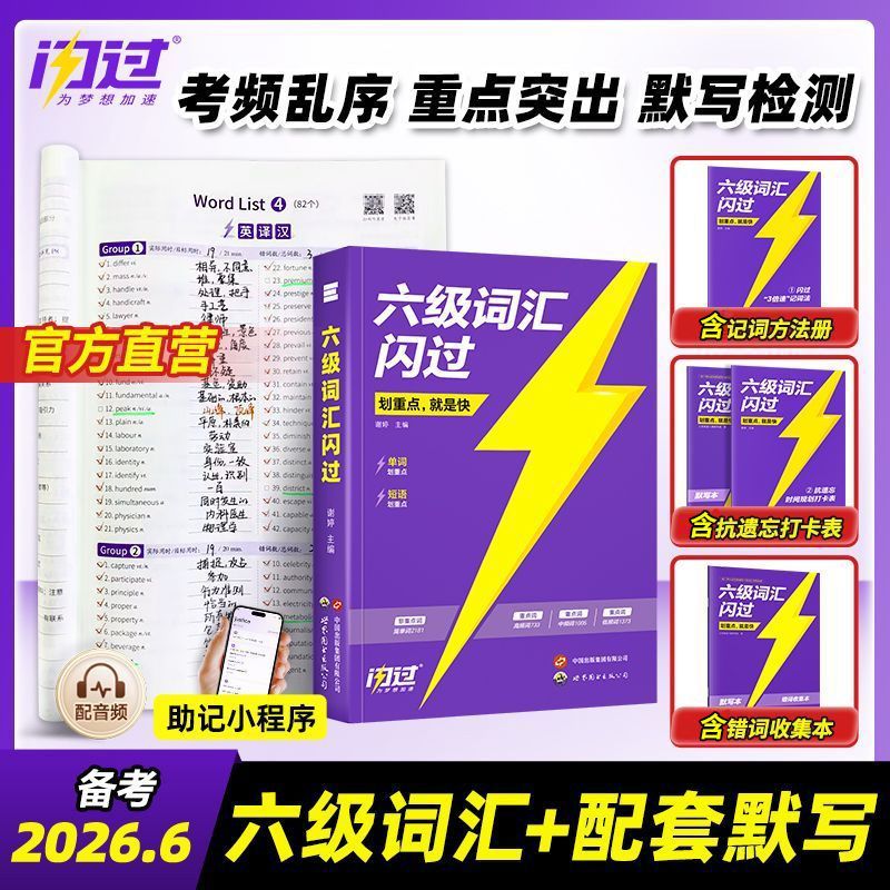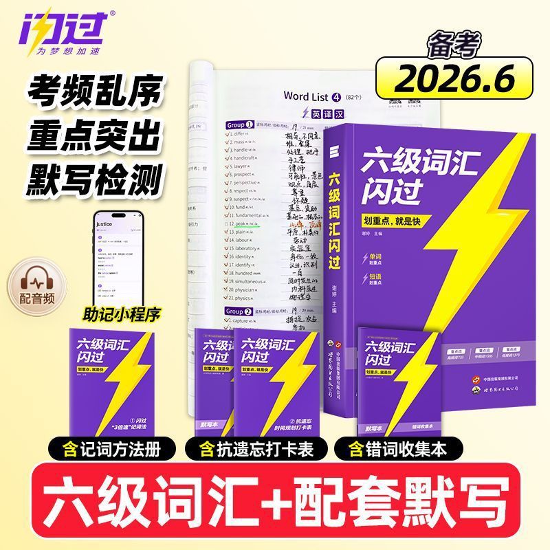 【假一赔十】2026.6六级词汇闪过旗舰版英语六级真题单词书默写本