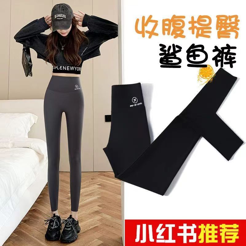 九分鲨鱼裤春夏薄款女高腰显瘦提臀芭比健身弹力大码瑜伽打底裤子