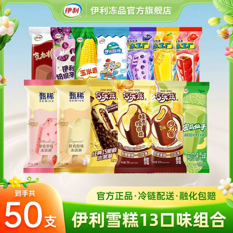 【50支】伊利雪糕甄稀原味草莓巧乐兹四个圈桂香蜜瓜冰工厂冰淇淋
