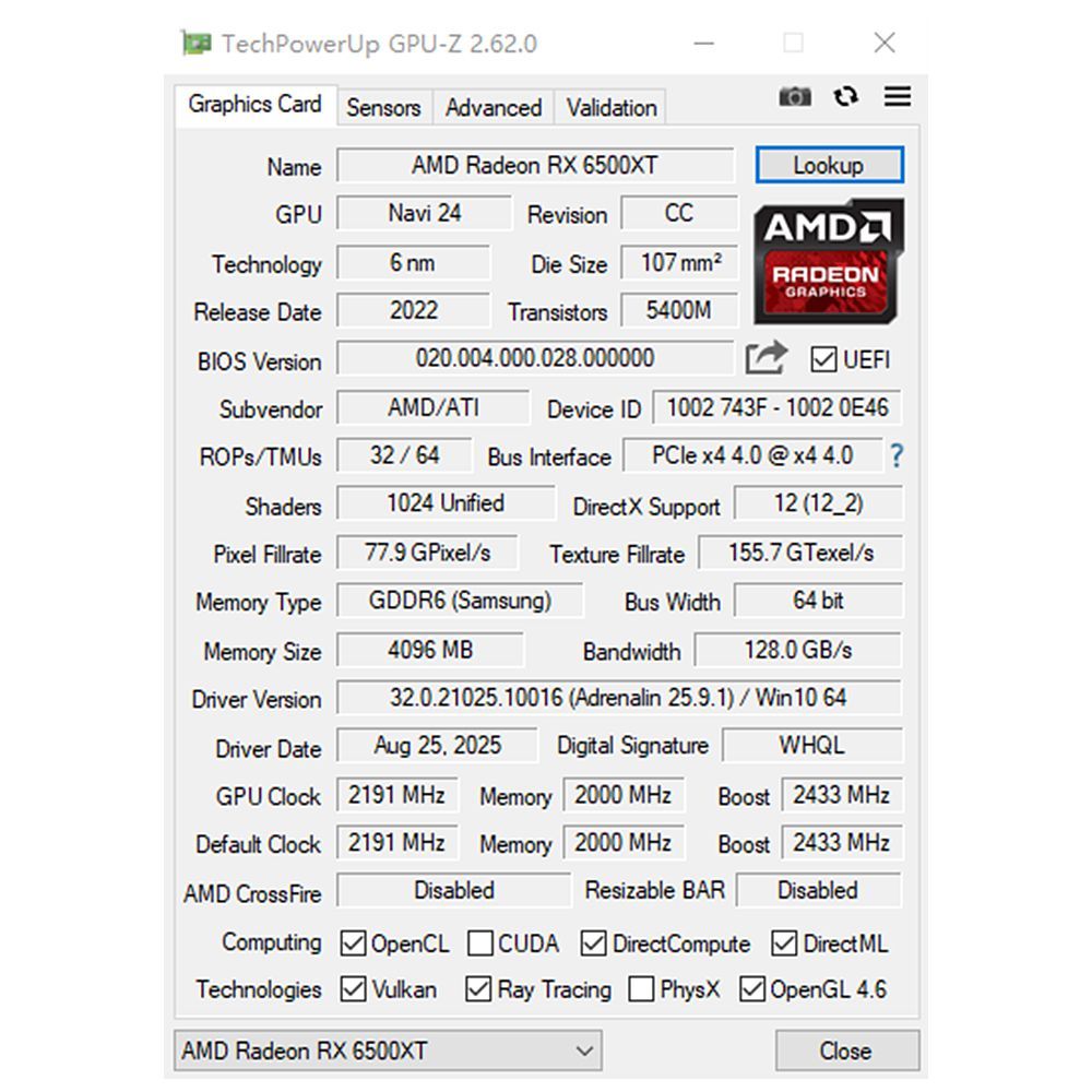 梅捷全新 AMD Radeon RX6500XT 4G 电竞吃鸡游戏专业独立显卡黑色