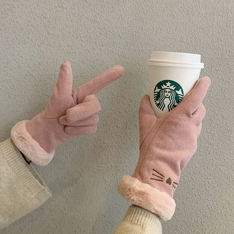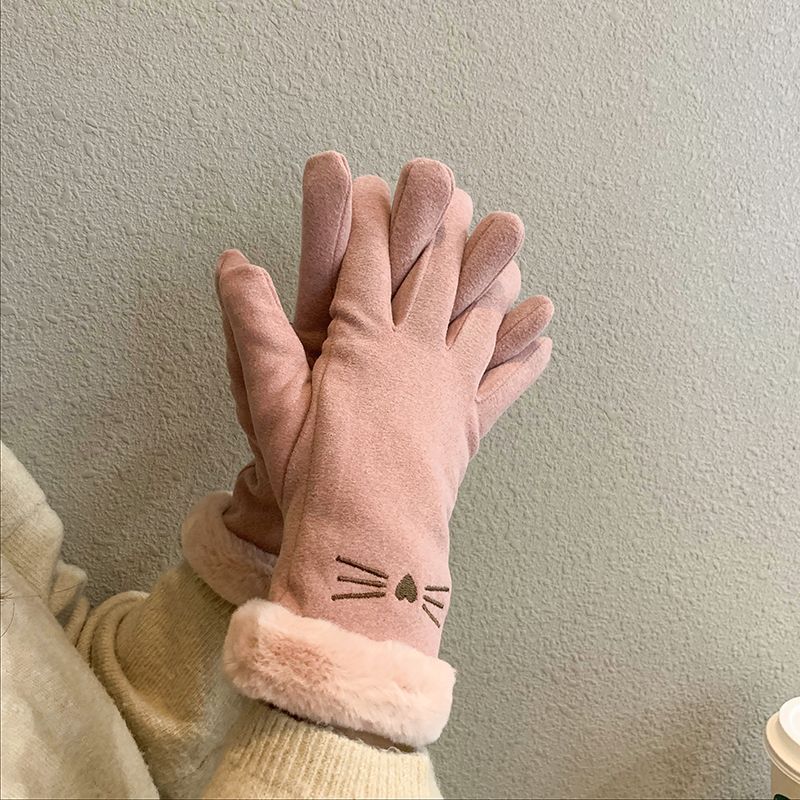 手套女冬季保暖加厚可爱冬女士骑车防风防寒加绒五指触屏手套骑行