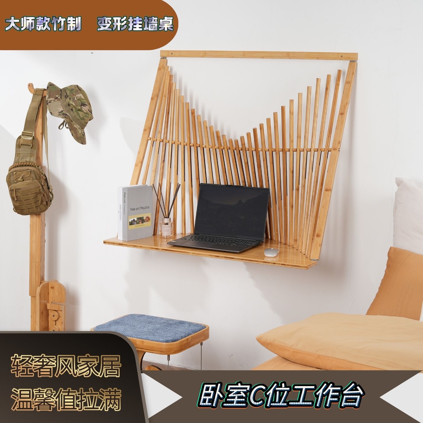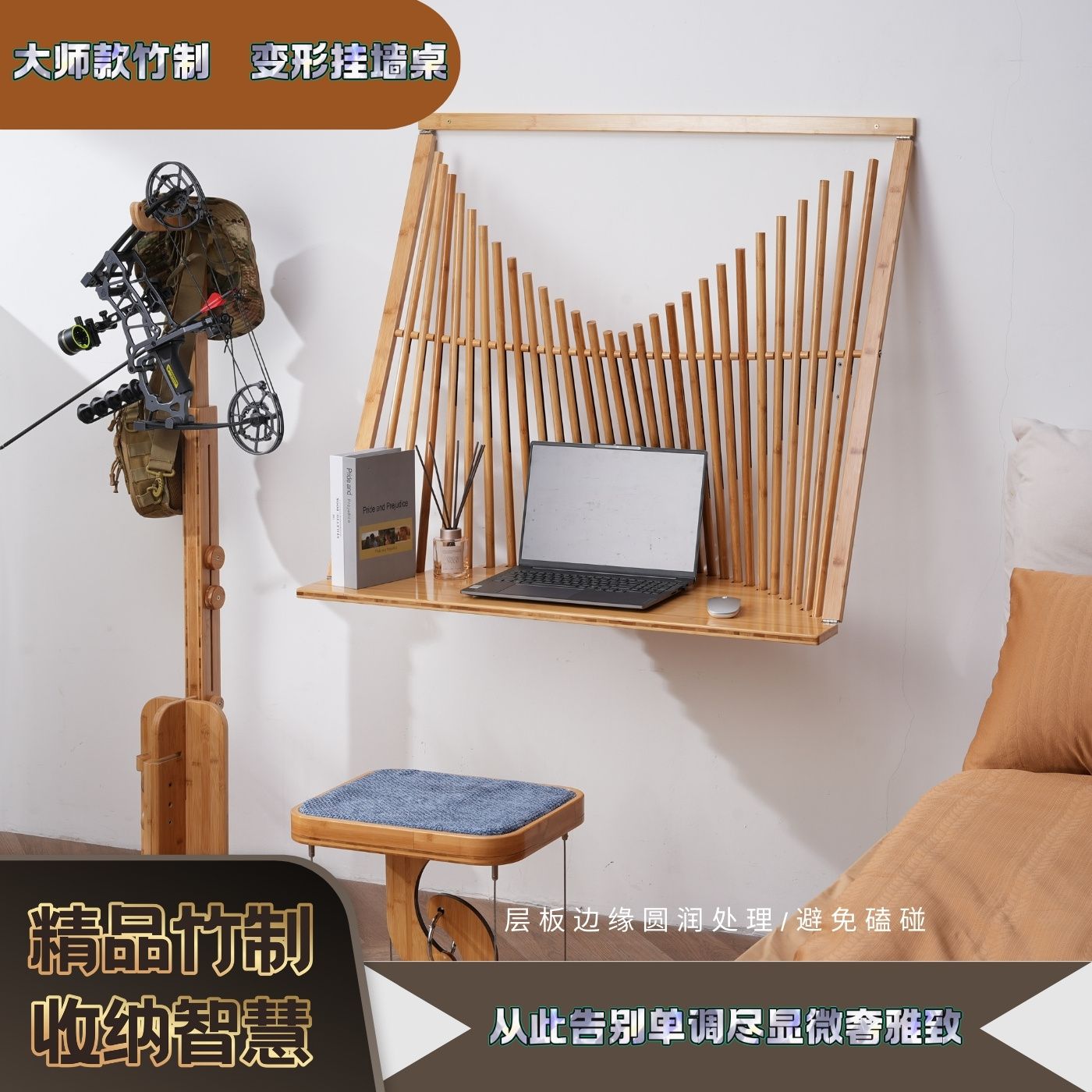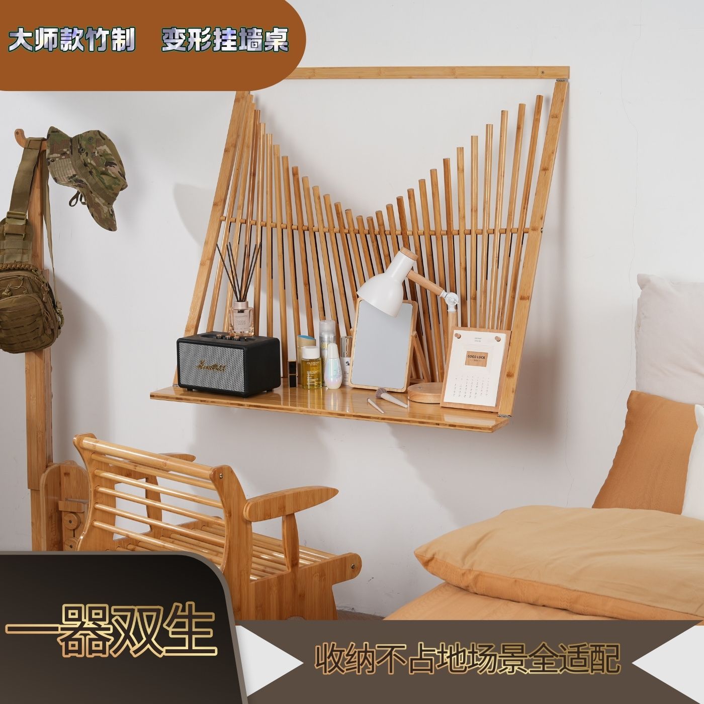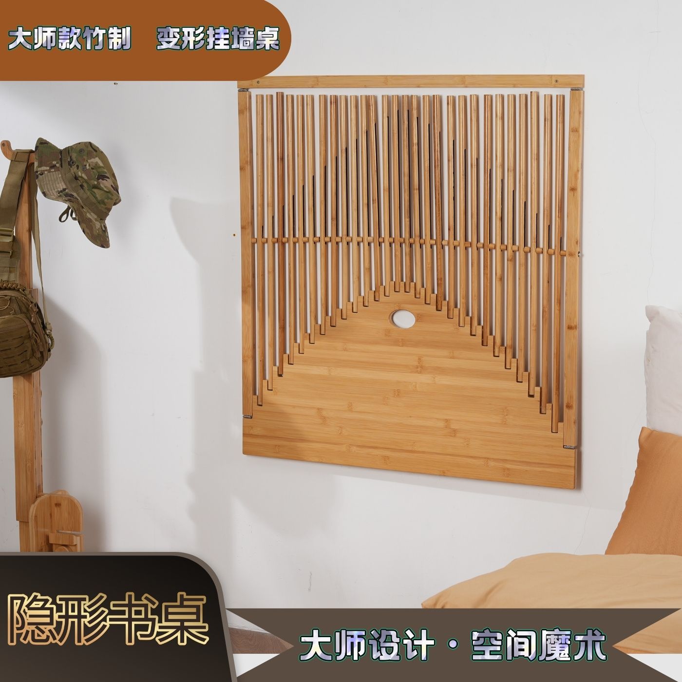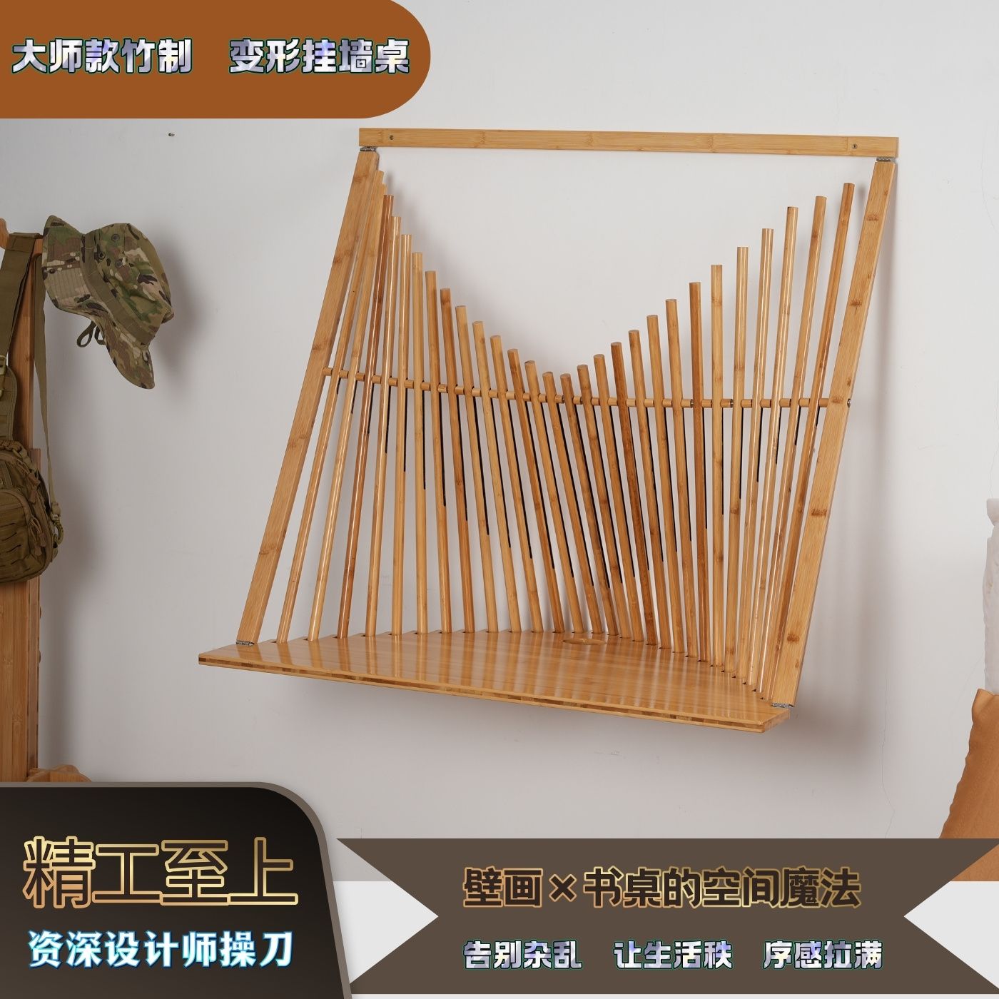 网红款竹制创意简约现代竹韵壁挂折叠桌多功能艺术风格卯榫工艺