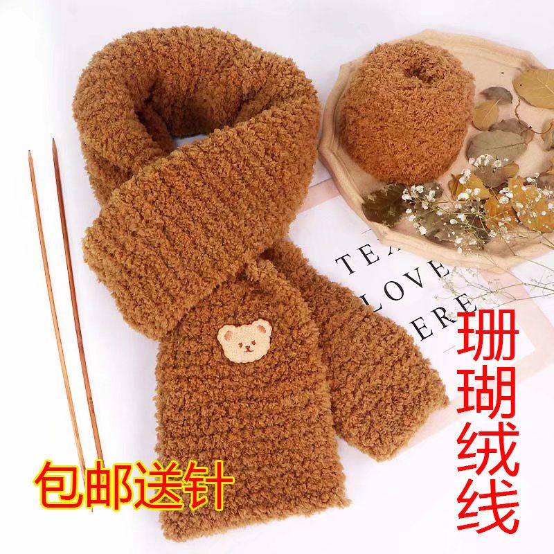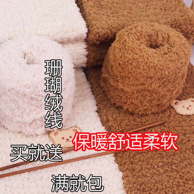 珊瑚绒毛线团绒绒线三股毛巾线儿童宝宝线手工diy编织小熊围巾线