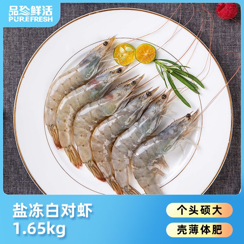 【品珍鲜活】盐冻白虾特大号30/40厄瓜多尔鲜白虾净重3.3斤海鲜