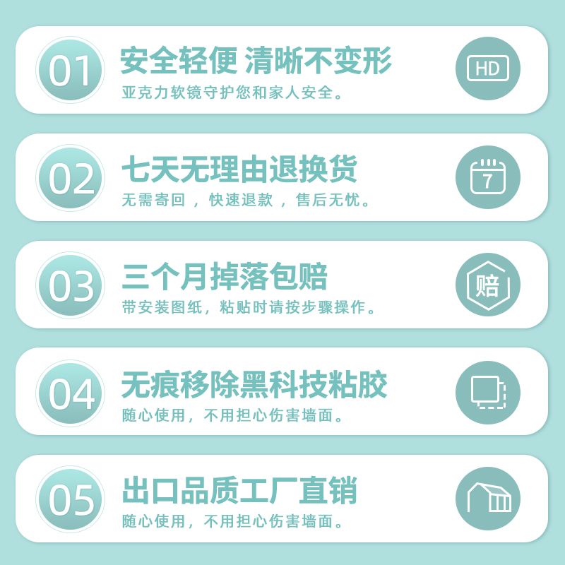 亚克力软镜子自粘贴墙网红可弯曲高清无框全身镜试衣镜宿舍家用