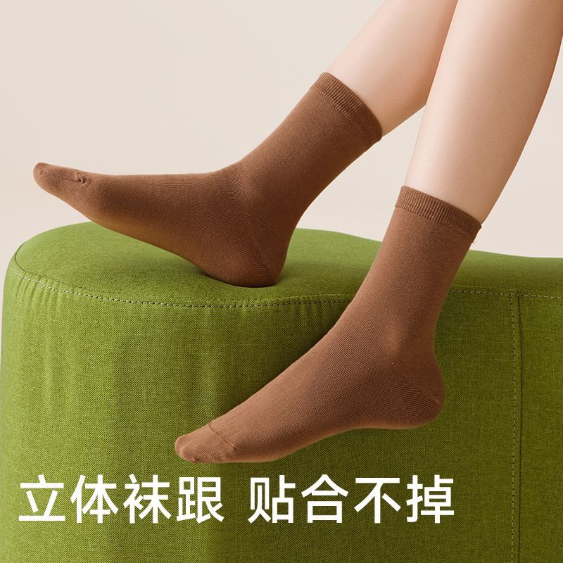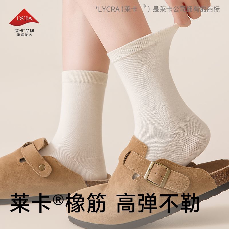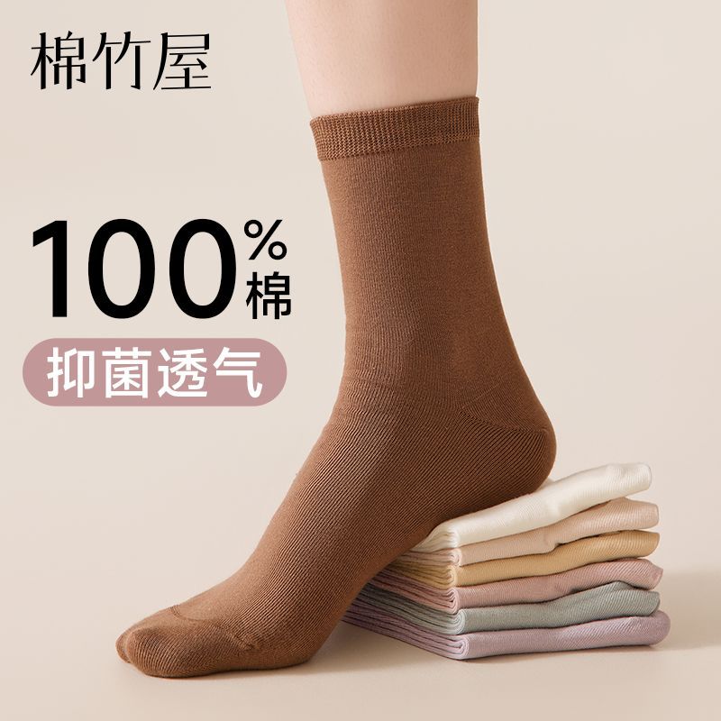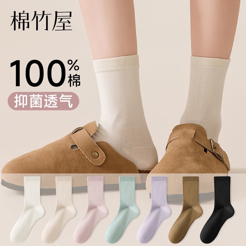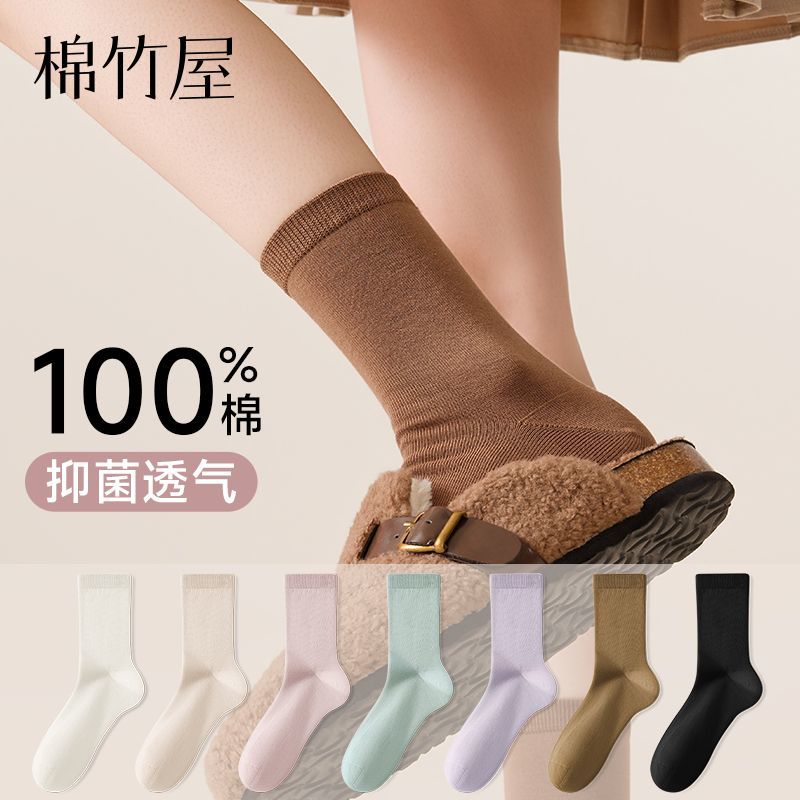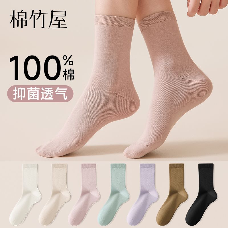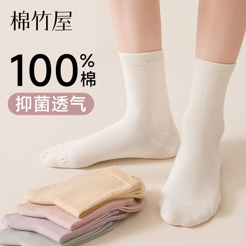 棉竹屋袜子女纯棉抗菌月子袜中筒四季吸汗春秋透气防臭白袜堆堆袜