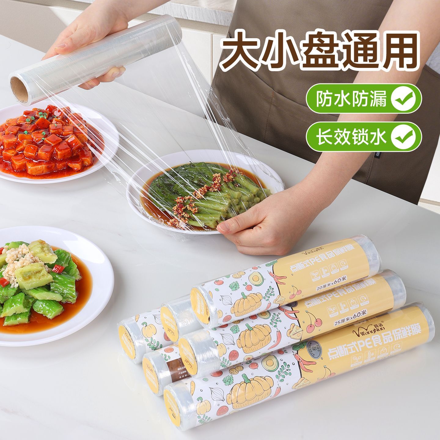 保鲜膜点断式家用食品级冰箱免刀切免手撕耐高温一次性PE保鲜膜