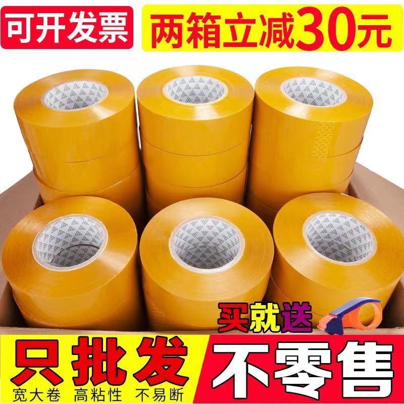 整箱批发米黄透明胶带防水封箱强力封口快递打包包装纸箱大卷胶布